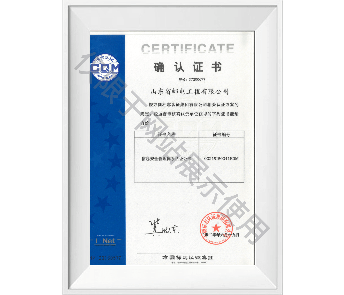 通过了GB/T19001—2016、GB/T50430-2017质量管理体系认证、GB/T24001—2016环境管理体系认证、GB/T45001—2020职业健康安全管理体系认证和GB/T22080—2016信息安全管理体系认证。连续多年被山东省工商局评为省级守合同重信用企业。